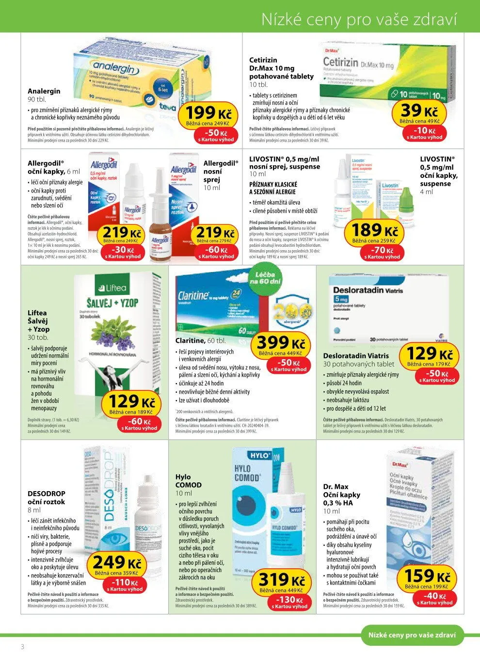 60 tbl. - řeší projevy interiérových i venkovních alergií. Cena: 399 Kč (běžná cena 449 Kč).