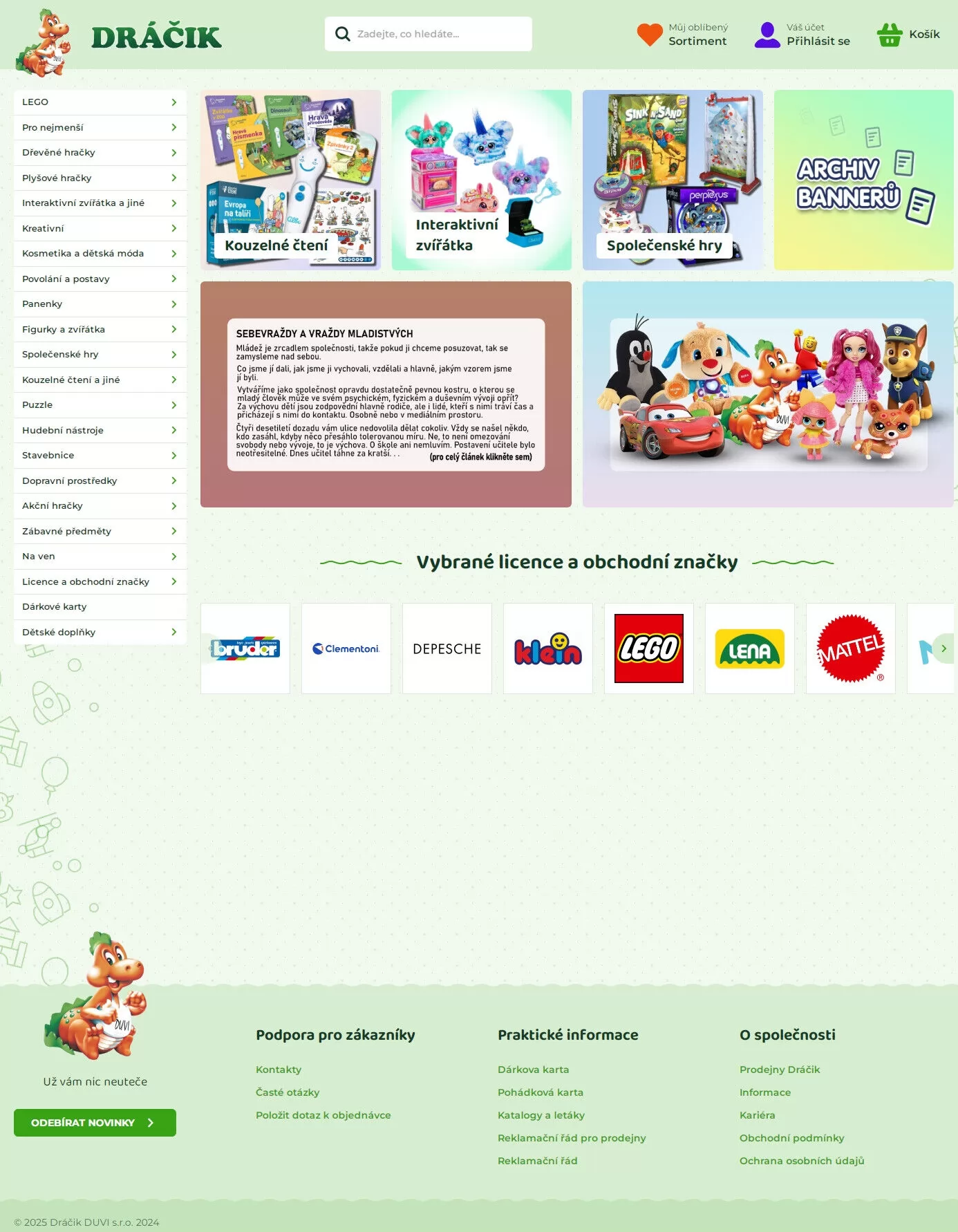 Nabízíme oblíbené stavebnice LEGO, dřevěné a plyšové hračky, interaktivní zvířátka a kreativní sady.