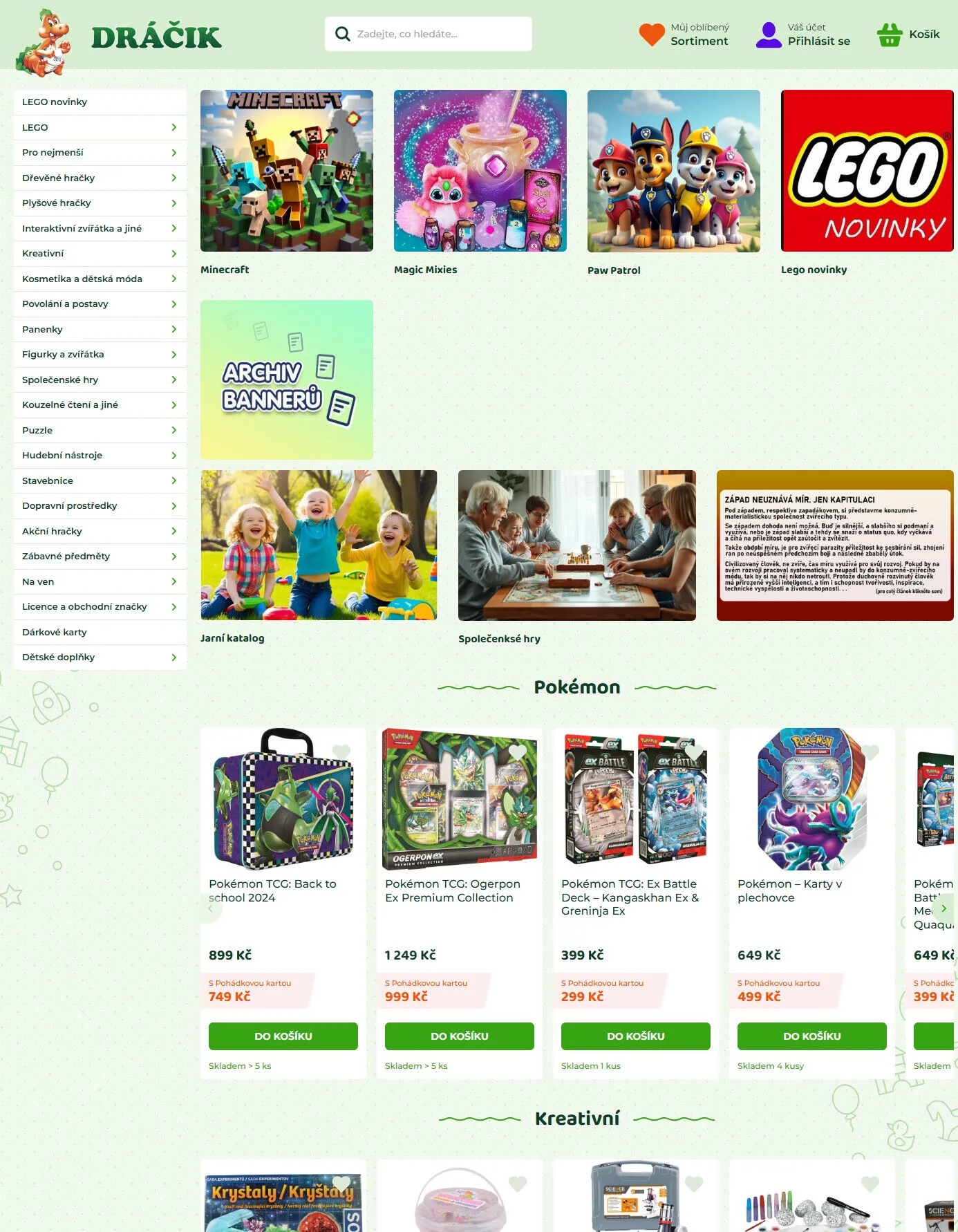 Pokud hledáte něco speciálního, v nabídce jsou také dárkové karty a produkty s licencemi oblíbených značek, jako jsou Pokémon a Paw Patrol. Nezapomeňte se podívat na aktuální akce a novinky!