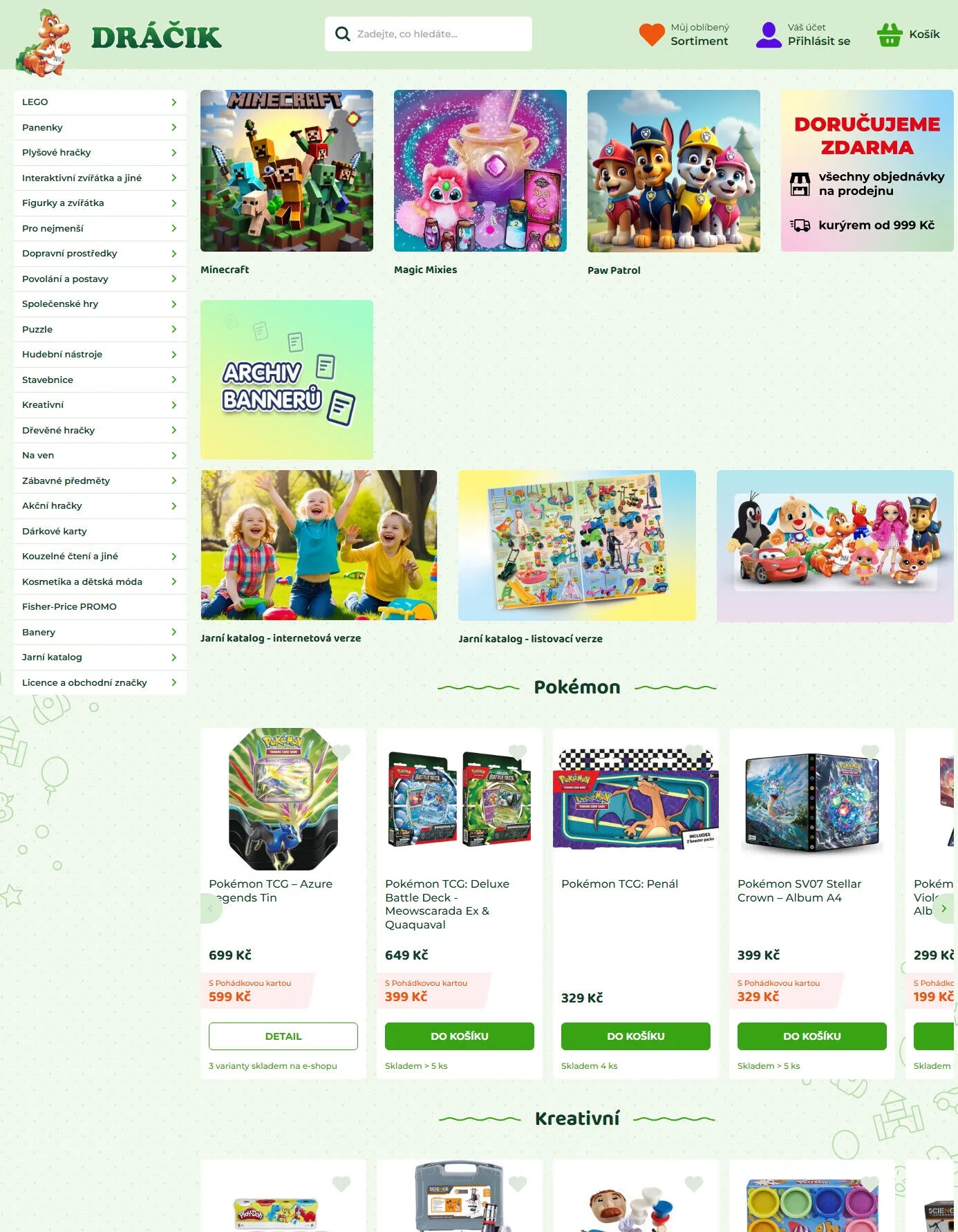 V letáku obchodu Dráčik najdete široký sortiment produktů pro děti všech věkových kategorií. Nabízíme kouzelné hračky Magic Mixies, oblíbené stavebnice LEGO, panenky a plyšové hračky. Pro nejmenší máme interaktivní zvířátka a dřevěné hračky, které podporují kreativitu.