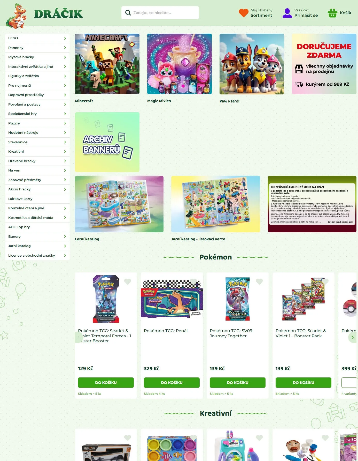 Nabízíme populární LEGO stavebnice, krásné panenky a měkké plyšové hračky.