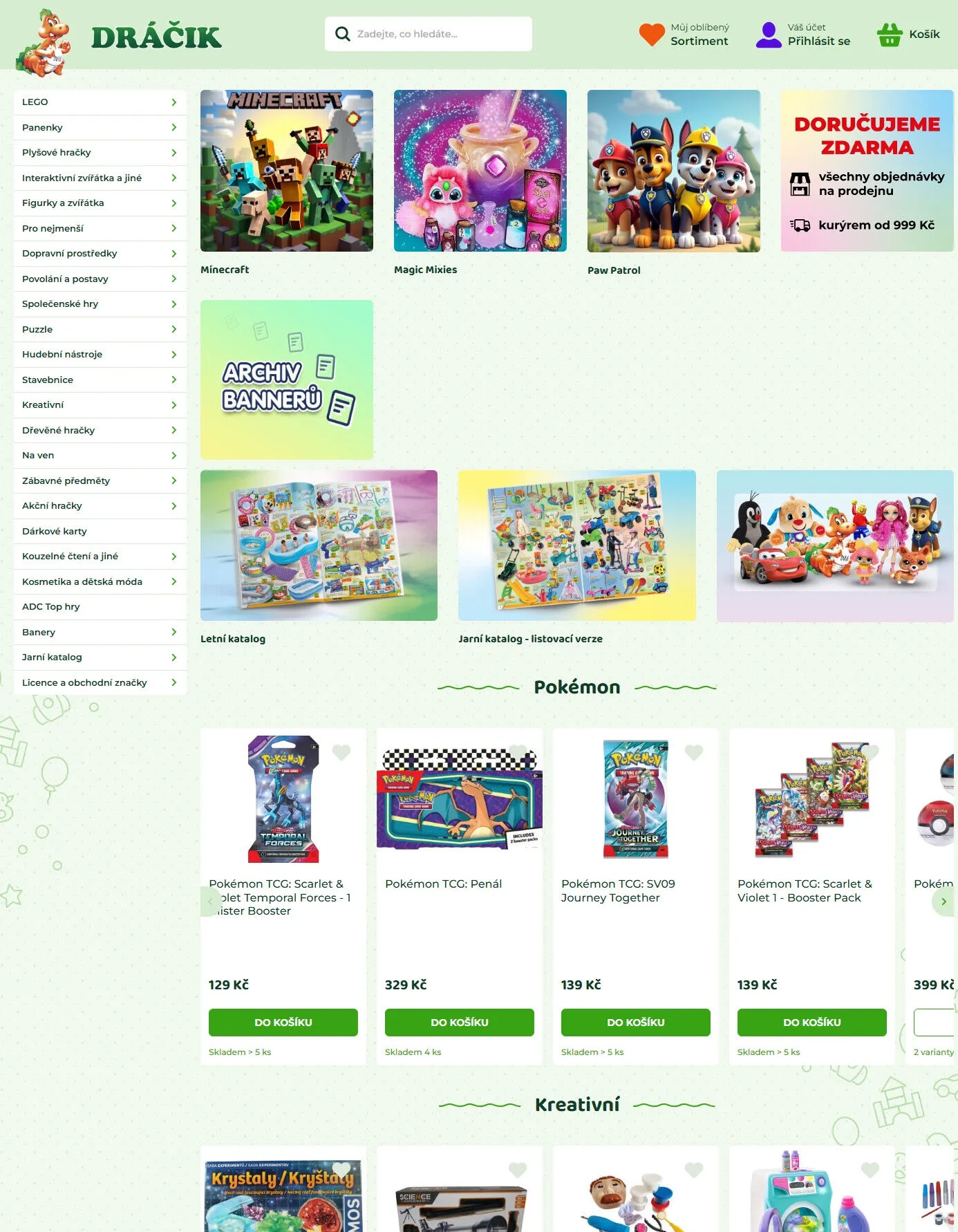 Nabízíme populární LEGO stavebnice, panenky, plyšové hračky a interaktivní zvířátka.