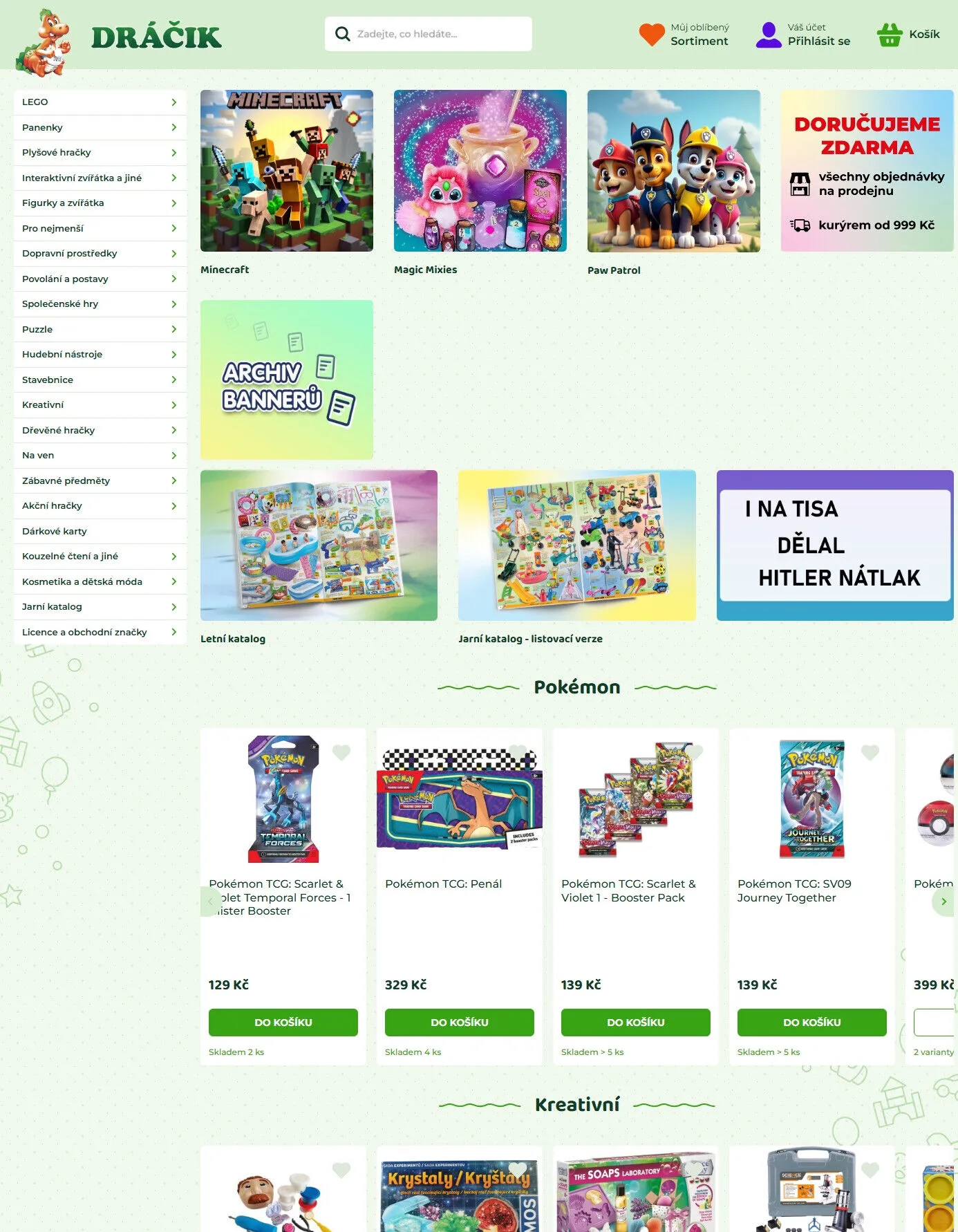 Podívejte se na naše jarní a letní katalogy, kde najdete novinky a akční nabídky. Všechny objednávky nad 999 Kč doručujeme zdarma. Navštivte nás a objevte kouzlo hraček v Dráčiku!