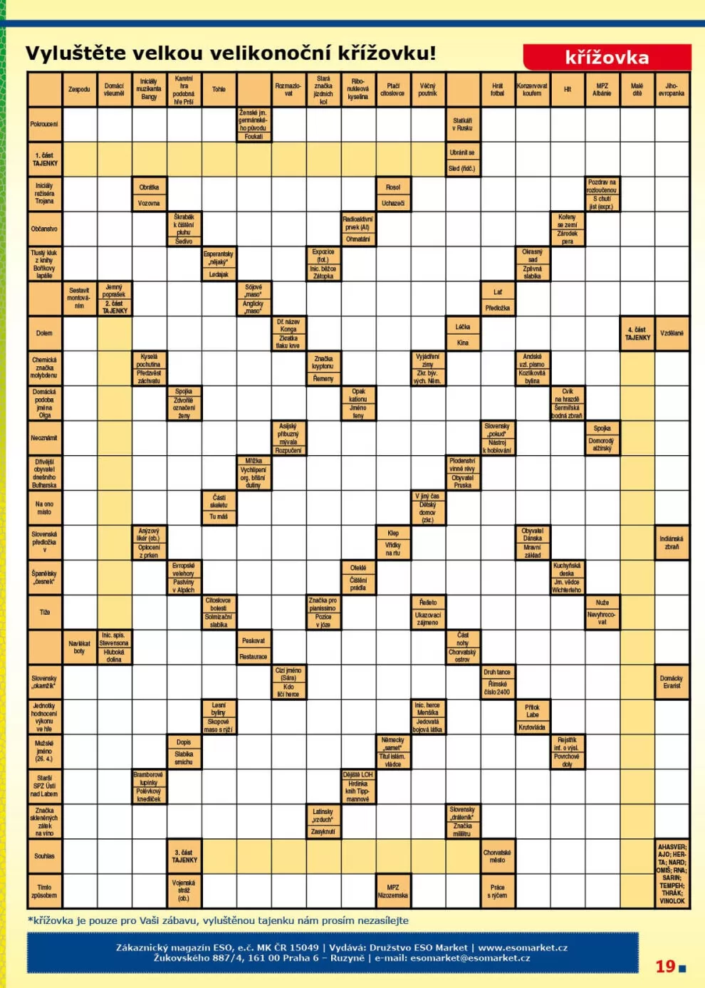 *křížovka je pouze pro vaši zábavu, vyluštěnou tajenku nám prosím nezasílejte