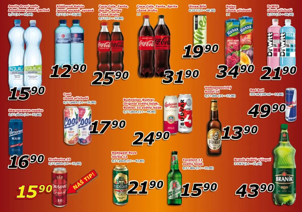 aqualinea jem druhy 1990 excelental 42190 2590 3190 34901212 15940 1690 razné přichutc • budweiser bd original budvar 33 leiók 1790 2490 radegast ryze hoi-ižá 12 1590 4990 39 ol braní 4390