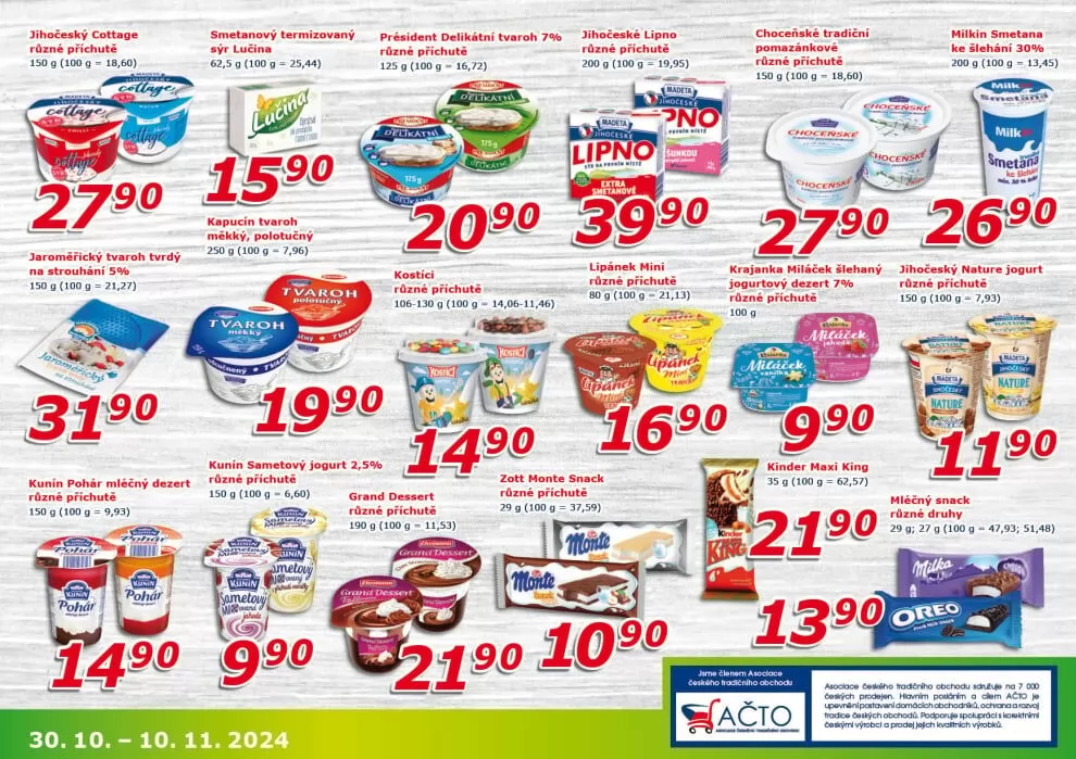 Nezapomeňte také na nový termizovaný Lučin, který je k dostání za 62,50 Kč. Pro milovníky tvarohu máme Kapucin tvaroh s obsahem 7,96 Kč.