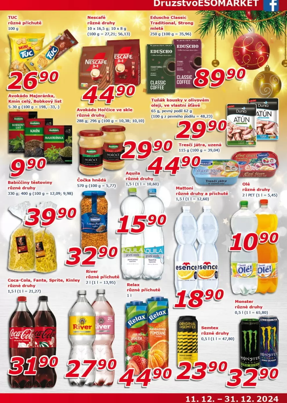 V letáku obchodu ESO MARKET najdete širokou nabídku produktů, které potěší každého zákazníka. Nabízíme různé příchutě tuctu, avokádo s majoránkou, kmínem a bobkovým listem. Dále si můžete vybrat z babiččiných těstovin v různých druzích, nebo si dopřát kvalitní Nescafé.