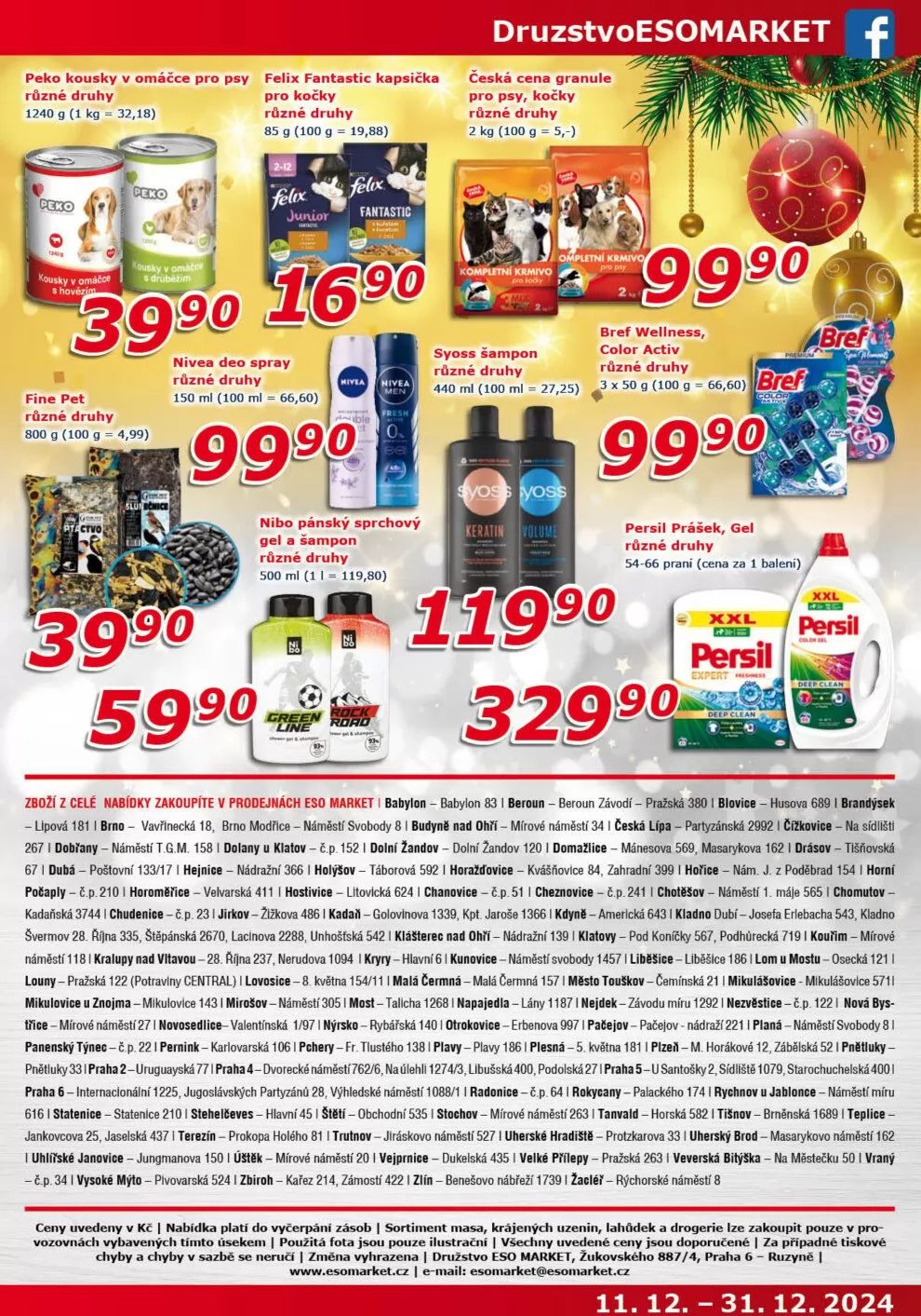 V letáku obchodu ESO MARKET najdete širokou nabídku produktů pro vaše domácí mazlíčky a osobní péči.