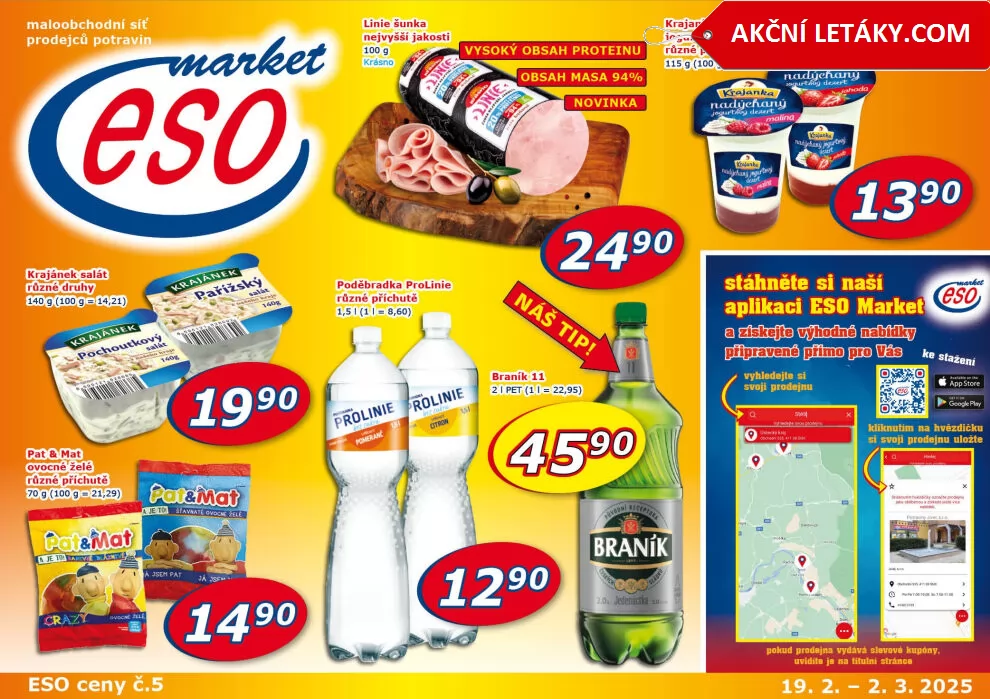 V letáku obchodu ESO MARKET najdete širokou nabídku kvalitních produktů. Mezi novinkami se objevuje Poděbradka pro linie s vysokým obsahem chuti, která je ideální pro osvěžení. Dále nabízíme Krajanku, nadýchaný jogurtový dezert s obsahem proteinu, který si zamilujete. Nezapomeňte také na naše akční ceny, které potěší vaši peněženku. Stáhněte si naši aplikaci ESO MARKET a mějte svou oblíbenou prodejnu vždy po ruce!