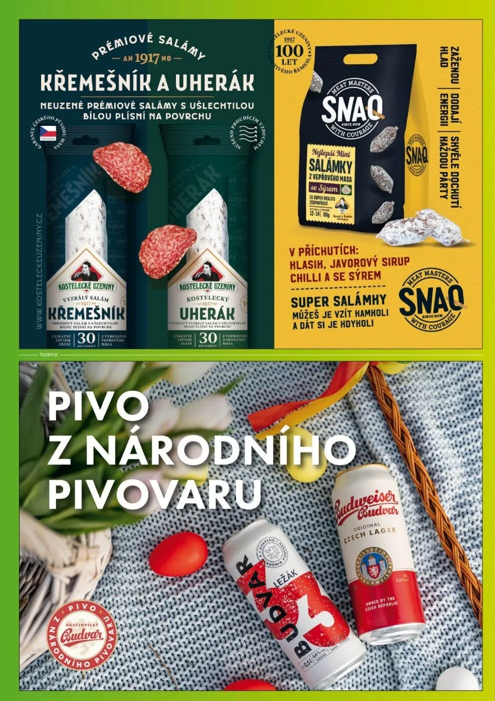 V letáku obchodu ESO MARKET najdete širokou nabídku kvalitních uzenin. Mezi nimi vynikají prémiové salámy s ušlechtilou bílou plísní na povrchu, které potěší každého gurmána. Dále nabízíme mini salámky z vepřového masa v různých příchutích, jako jsou javorový sirup, chilli a sýr. Tyto super salámky jsou ideální na cesty nebo jako rychlá svačina. Nezapomeňte také na tradiční kostelecké uzeniny, které jsou vyrobeny s láskou a péčí. Navštivte nás a objevte chuťové zážitky, které si zamilujete!