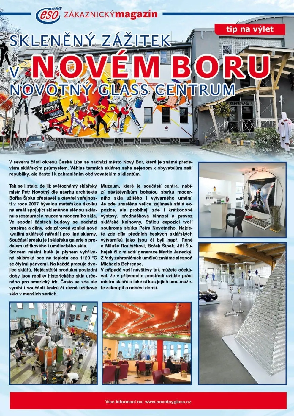 Navštivte město Nový Bor, které je srdcem sklářského průmyslu v severní části okresu Česká Lípa. V areálu, který byl přestavěn sklářským mistrem Petrem Novotným, najdete sklárnu, restauraci a muzeum moderního skla. Obdivujte práci sklářů, kteří vytvářejí nejen repliky historického skla, ale i unikátní užitkové kousky. Muzeum nabízí bohatou sbírku moderního skla a pravidelně pořádá výstavy a přednášky. Nezapomeňte si odnést domů kousek sklářského umění! Více informací na www.novotnyglass.cz.