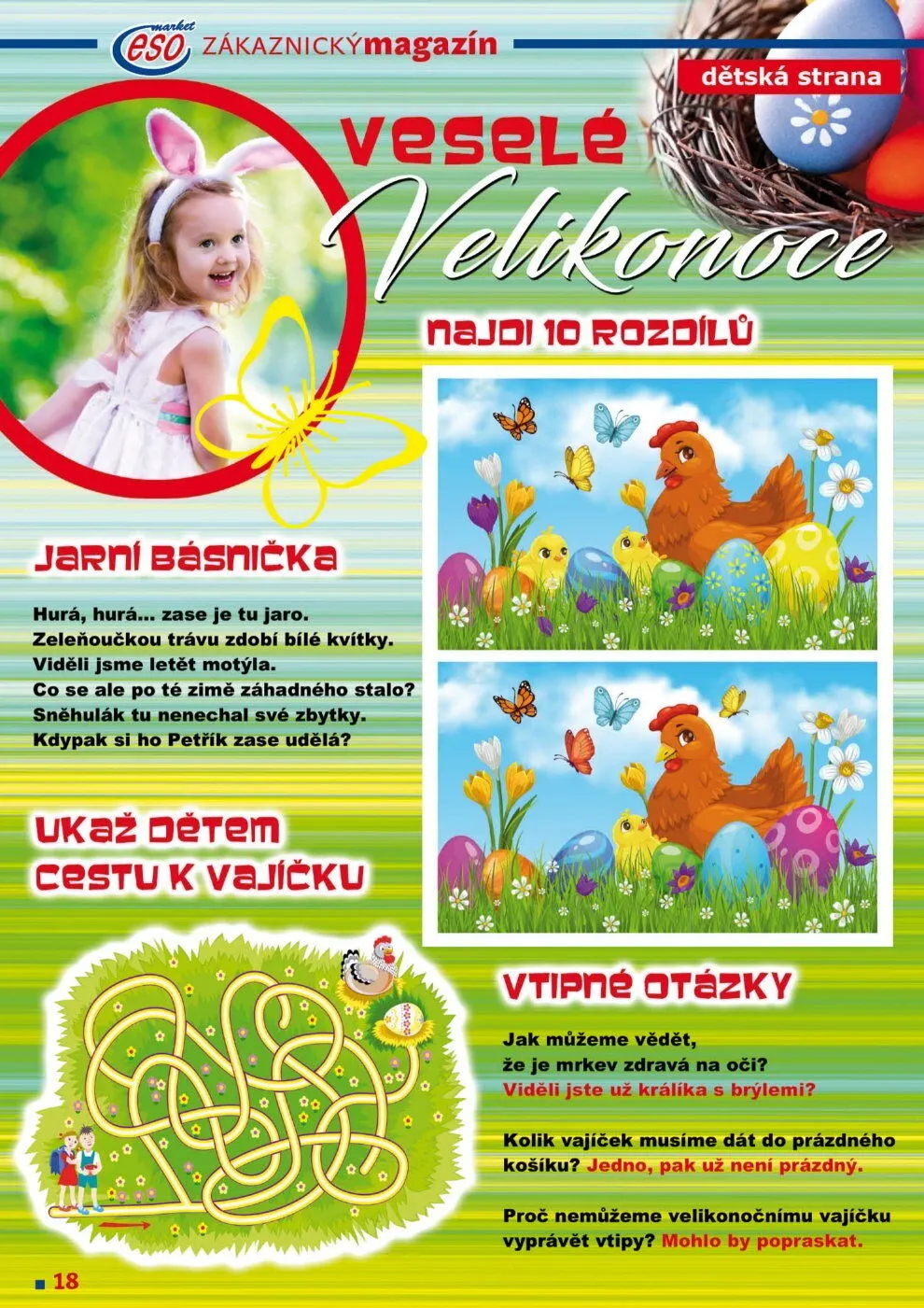 V ESO MARKETu přichází jaro a s ním i spousta skvělých produktů pro děti! Na dětské straně našeho letáku najdete veselou nabídku, která potěší nejen malé, ale i velké. Připravili jsme pro vás zábavné hračky, kreativní potřeby a jarní dekorace, které rozjasní každý den.
