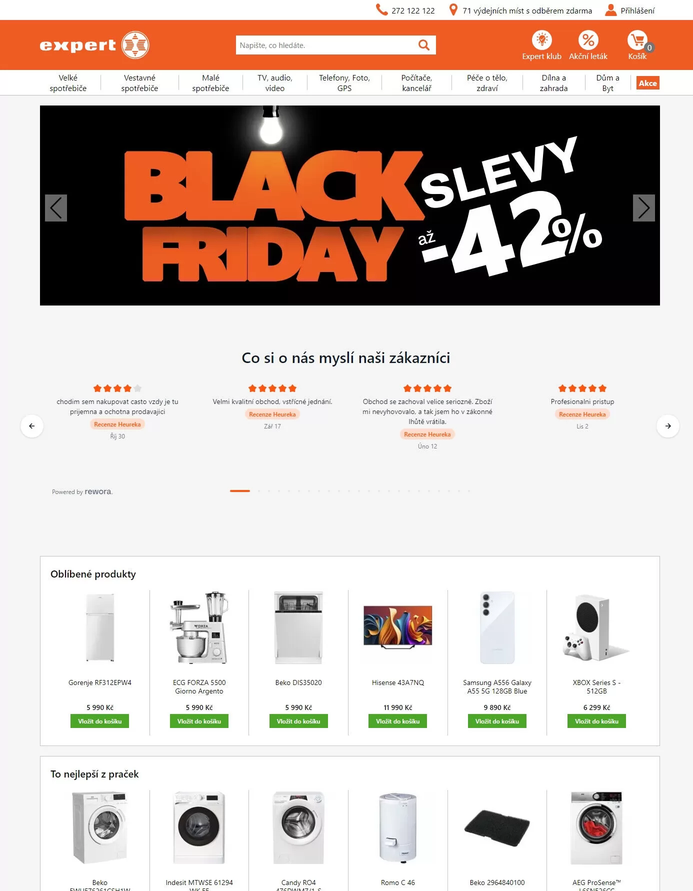V letáku obchodu Expert elektro najdete širokou nabídku spotřebičů a elektroniky. Mezi oblíbené produkty patří pračky Gorenje RZI 2EPW4 a Beko DIS35020, obě za cenu 5 990 Kč. Dále si můžete pořídit Candy R04 nebo ECG Forza 5500 Giorno Argento, také za 5 990 Kč.