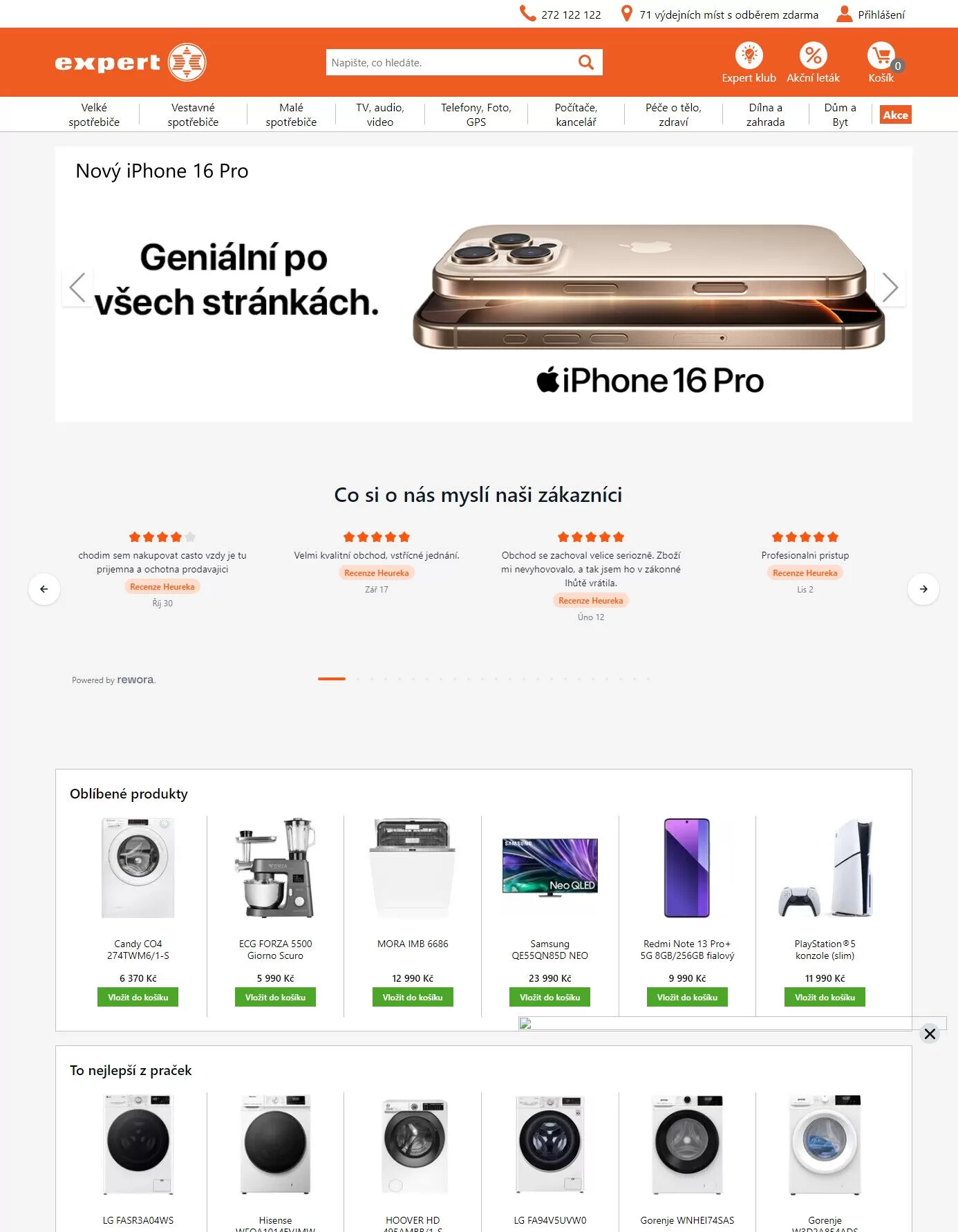 V letáku obchodu Expert elektro najdete širokou nabídku spotřebičů a elektroniky. Mezi oblíbené produkty patří: