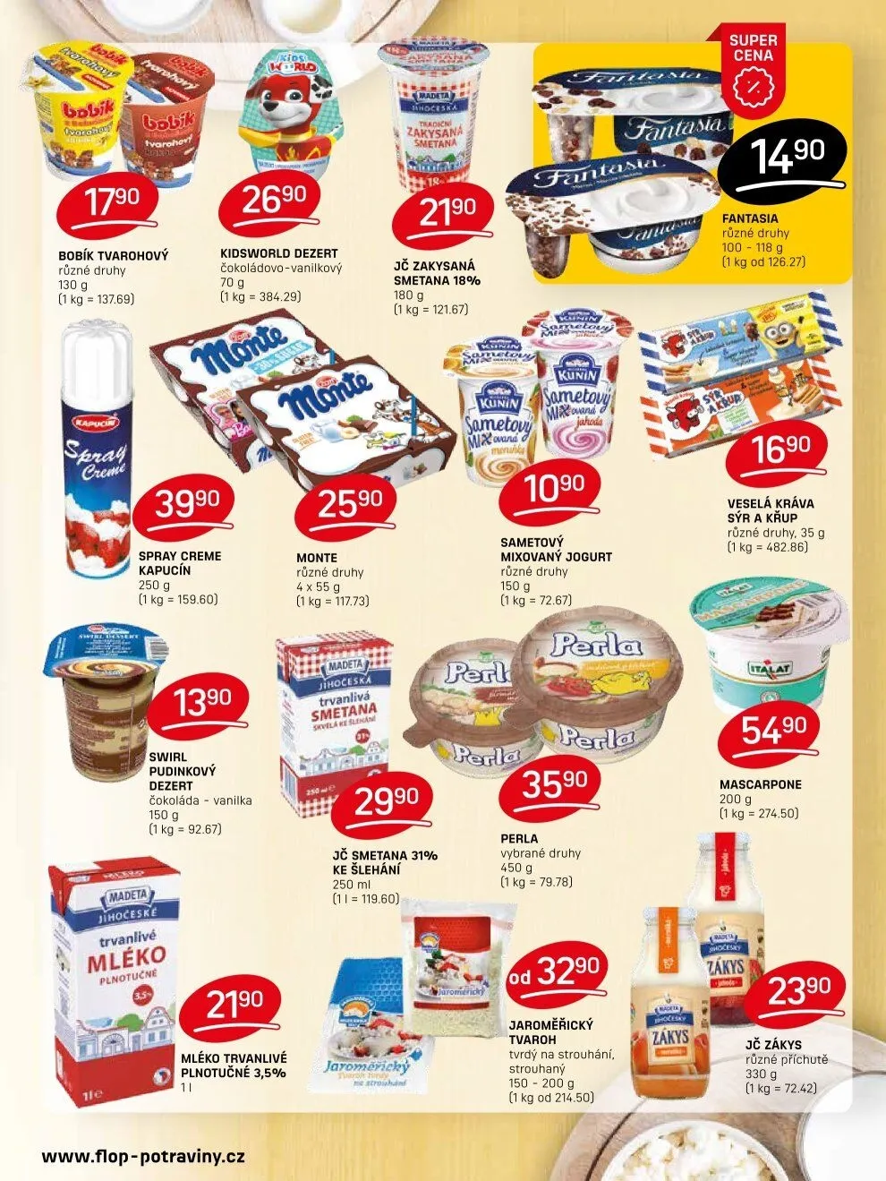 V letáku obchodu FLOP najdete širokou nabídku kvalitních mléčných produktů.