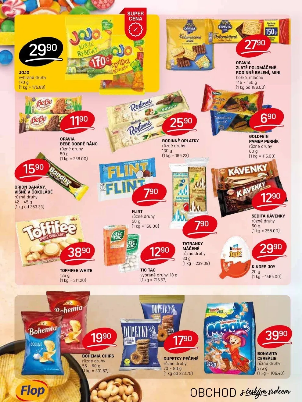 V letáku obchodu FLOP najdete širokou nabídku chutných produktů za skvělé ceny. Mezi nimi jsou například: