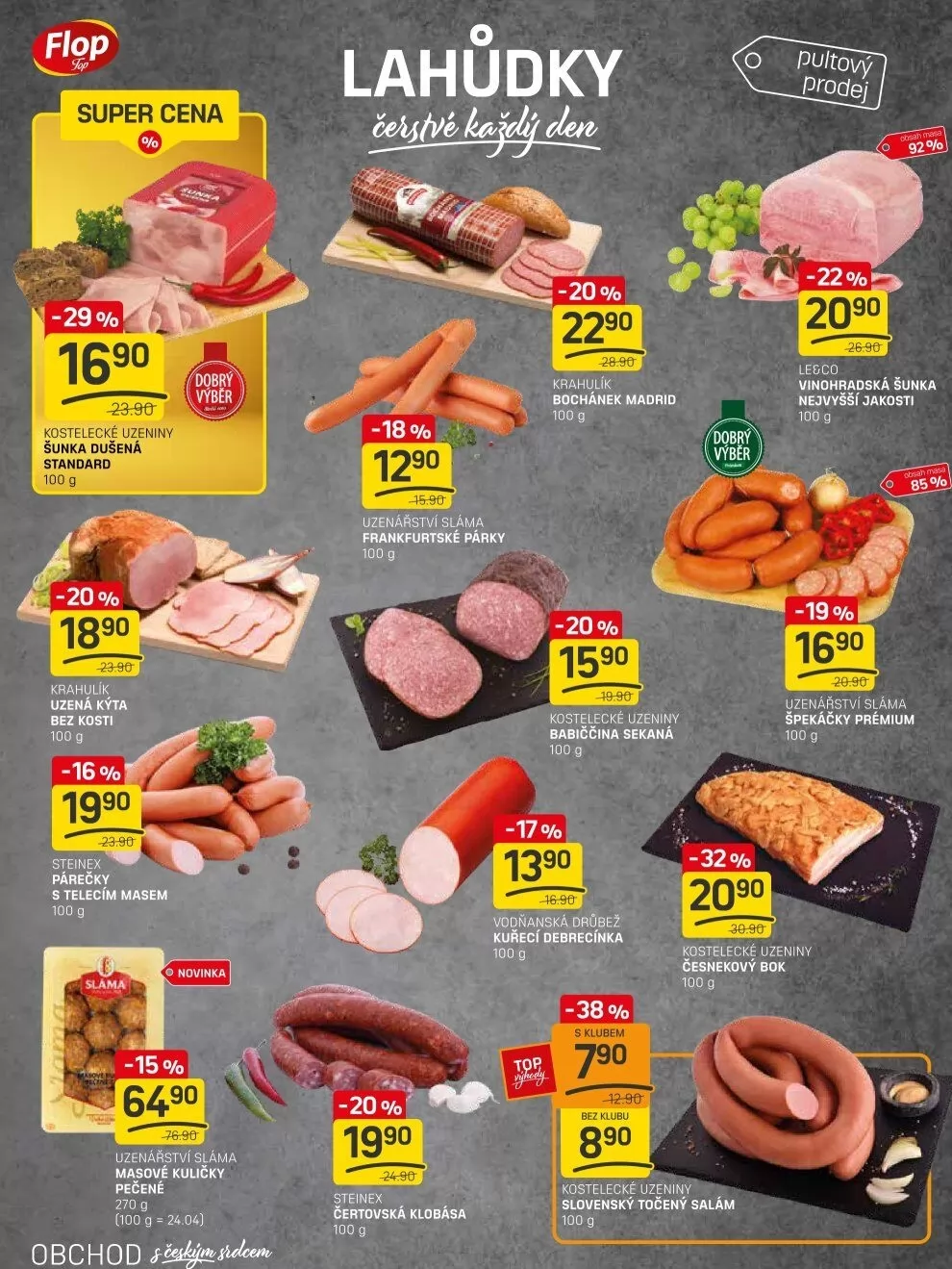 V letáku obchodu FLOP TOP najdete skvělé nabídky na kvalitní uzeniny.