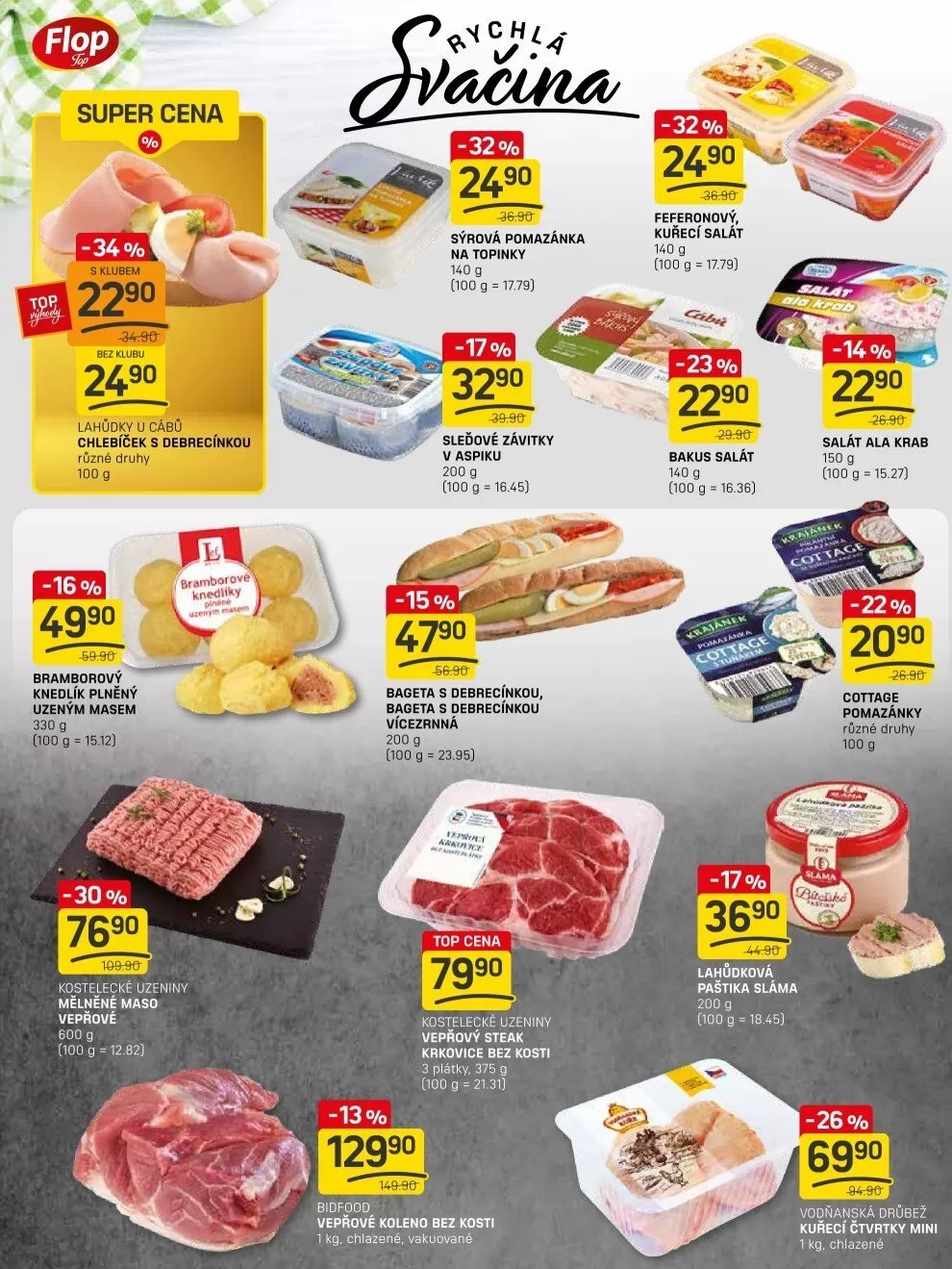 V letáku obchodu FLOP TOP najdete skvělé nabídky na lahůdky a uzeniny.