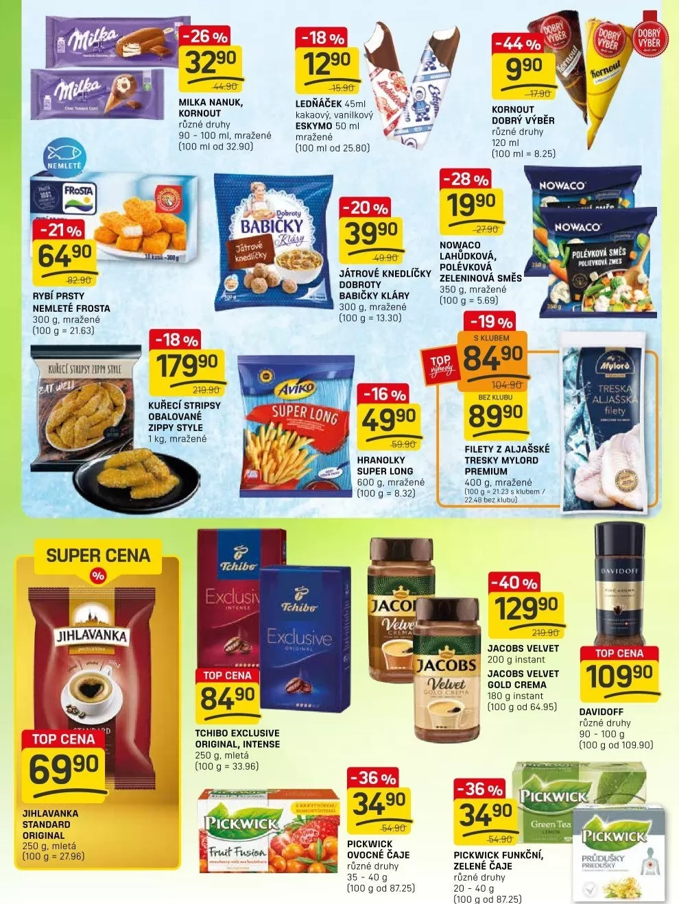 V letáku obchodu FLOP TOP najdete širokou nabídku mražených produktů a lahůdek. Mezi nimi se objevují oblíbené Milka nanuky v různých druzích, které mají objem 90-100 ml a jsou nyní se slevou 18%. Dále nabízíme ledňáčky a eskymo, které potěší milovníky mražených dobrot.
