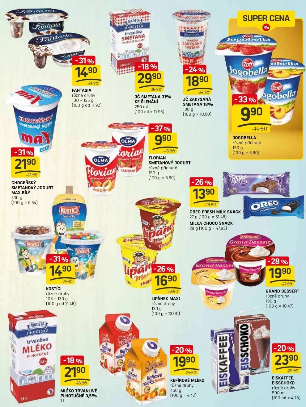 Nezapomeňte také na trvanlivé mléko plnotučné za 21,90 Kč a kefírové mléko 450 g za 19,90 Kč.