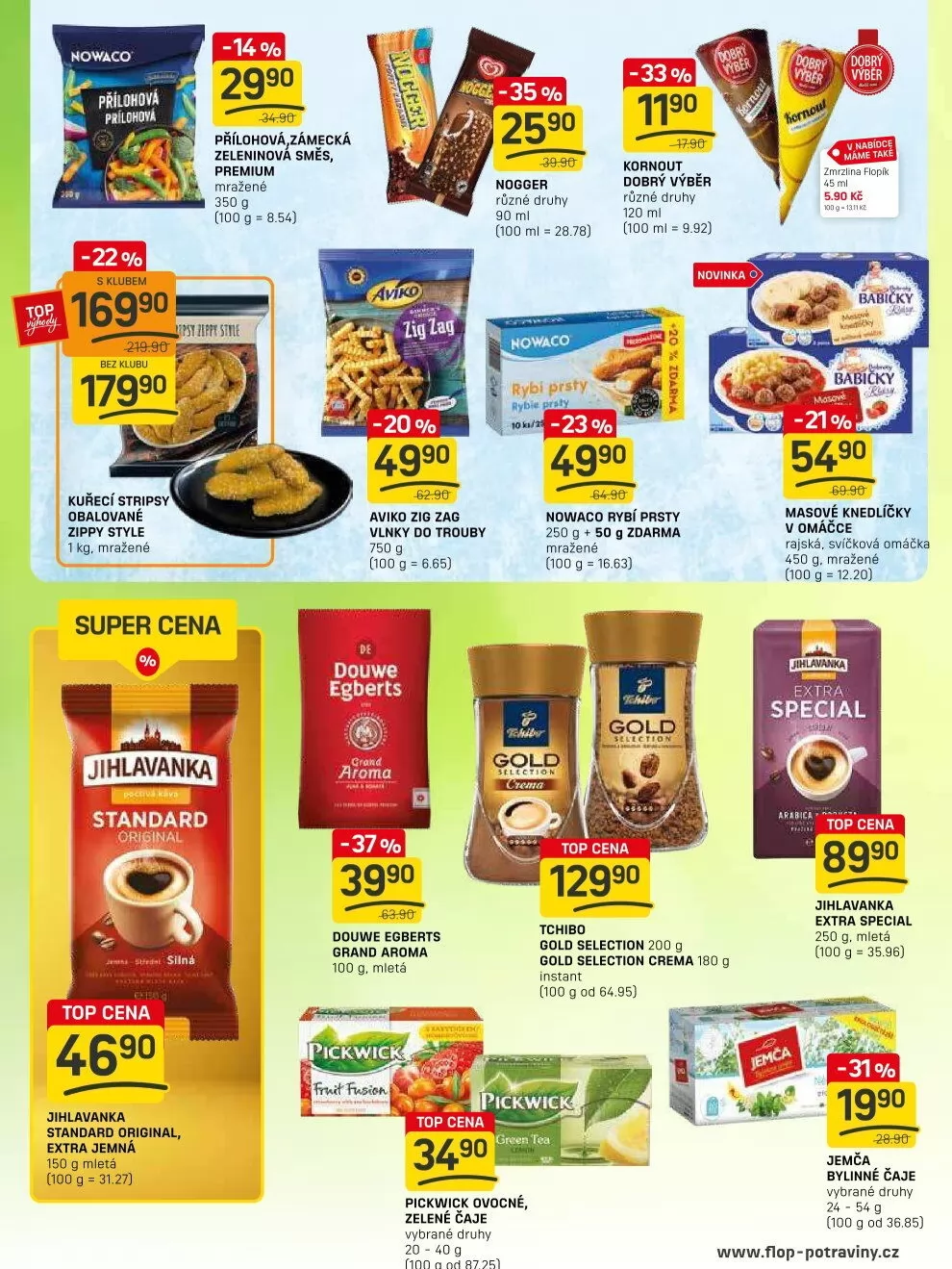Zaměřte se na mražené potraviny, jako jsou rybí prsty Nowaco, které nyní pořídíte za 119 Kč, nebo masové knedlíčky v rajské omáčce za 590 Kč.