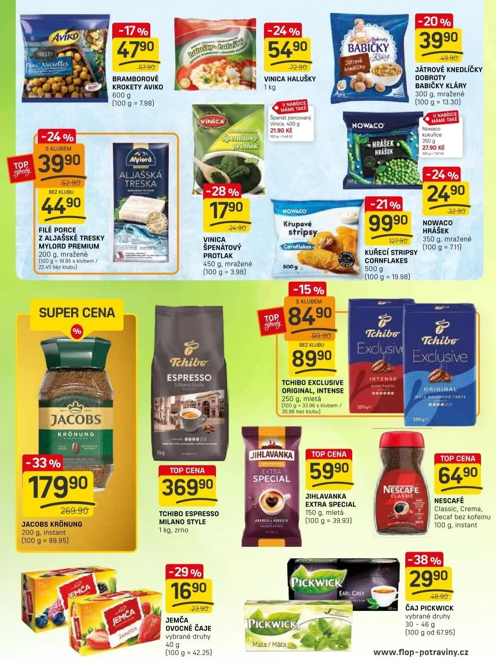 Nezapomeňte také na kuřecí stripsy 500 g za 9990 Kč a instantní kávu Jacobs Krönung 200 g za 17990 Kč, s úžasnou slevou 33%.