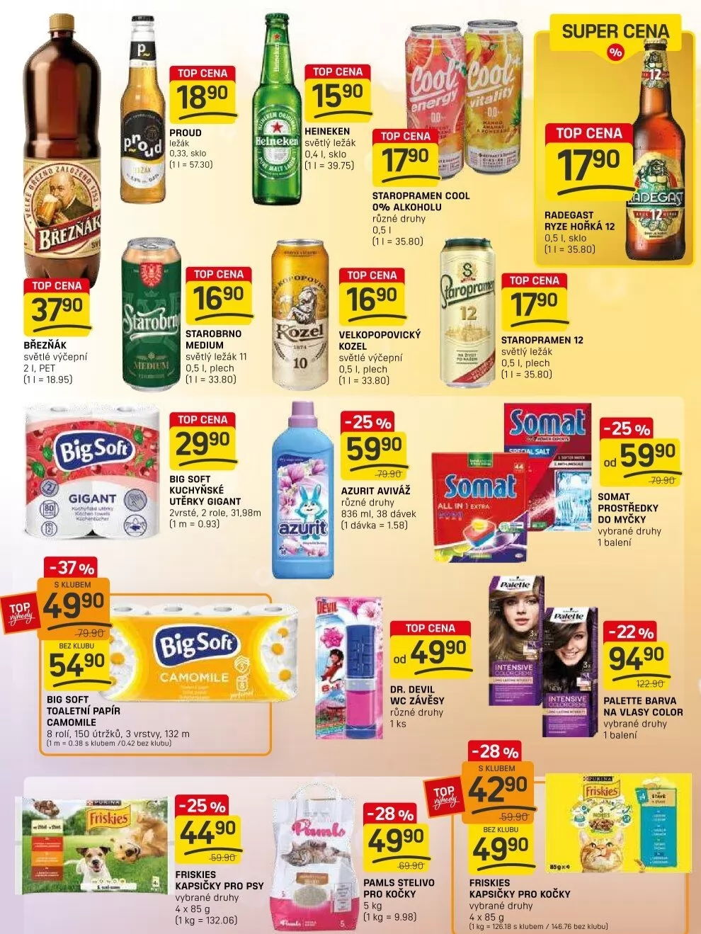 Nezapomněli jsme ani na domácí potřeby – aviváž Azurit a toaletní papír Big Soft jsou nyní za výhodné ceny. Pro majitele domácích mazlíčků nabízíme kapsičky Friskies pro psy a kočky, které potěší vaše čtyřnohé kamarády.