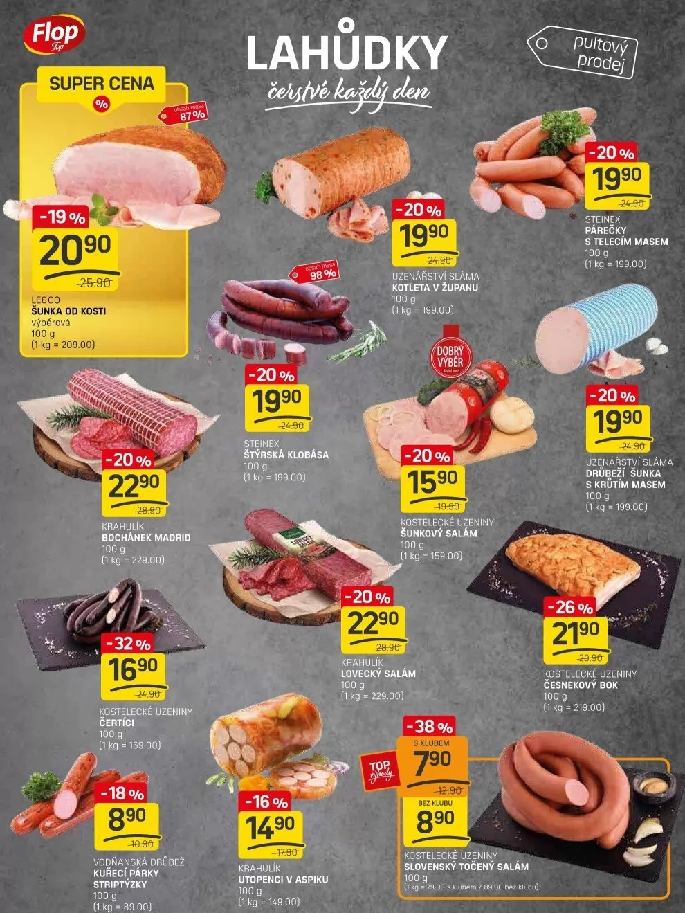 V letáku obchodu FLOP TOP najdete širokou nabídku kvalitních uzenin a lahůdek za super ceny!