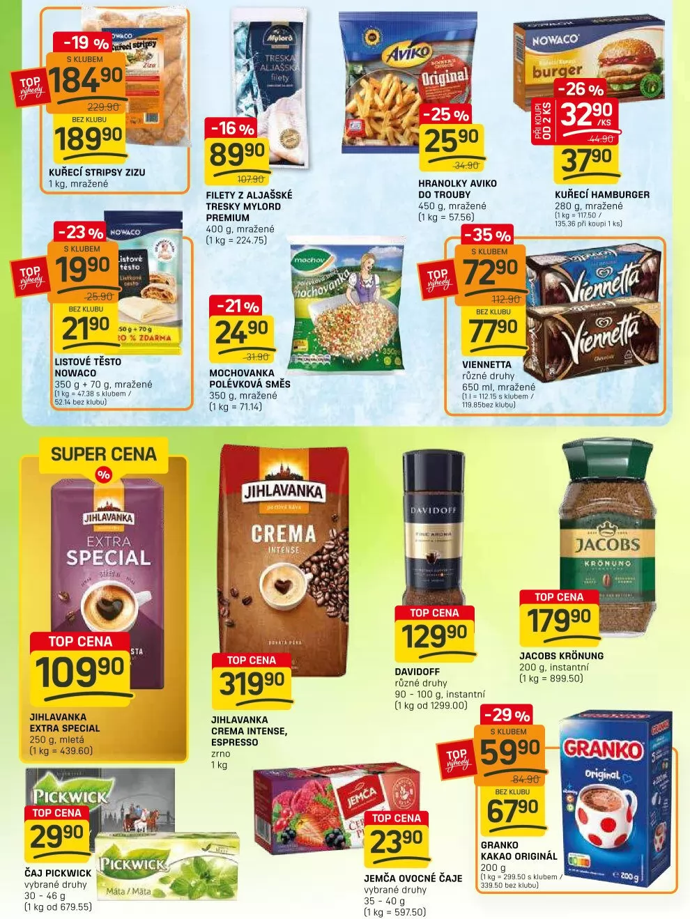 Hranolky Aviko do trouby nyní za 259 Kč (450 g) a mletá káva Jihlavanka extra special za 249 Kč (250 g) potěší každého milovníka dobrého jídla.