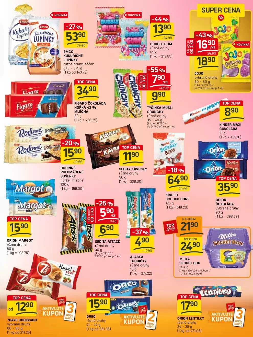 Nezapomeňte na tyčinky müsli Crunchy a Kinder Schoko Bons, které jsou také v akci.