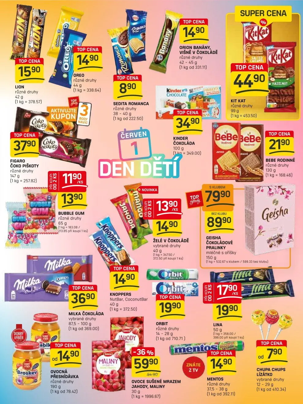 - Kinder čokoláda, 100 g, za 3490 Kč.