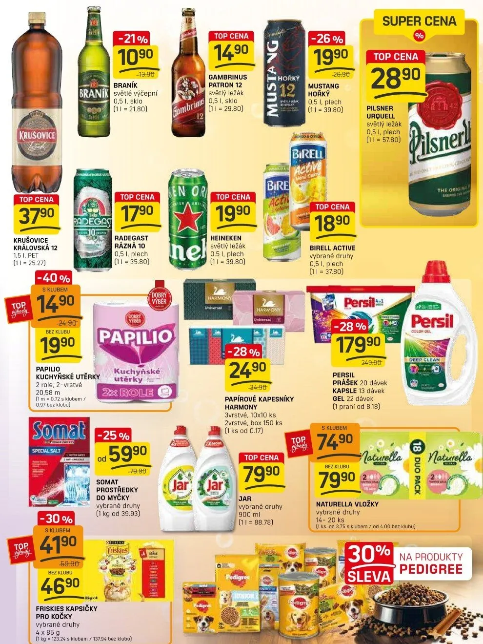 Pro milovníky piva je tu Pilsner Urquell a Radegast, oba za atraktivní ceny. Pokud hledáte něco pro domácnost, Persil nabízí prášky a kapsle na praní, a to za výhodné ceny.