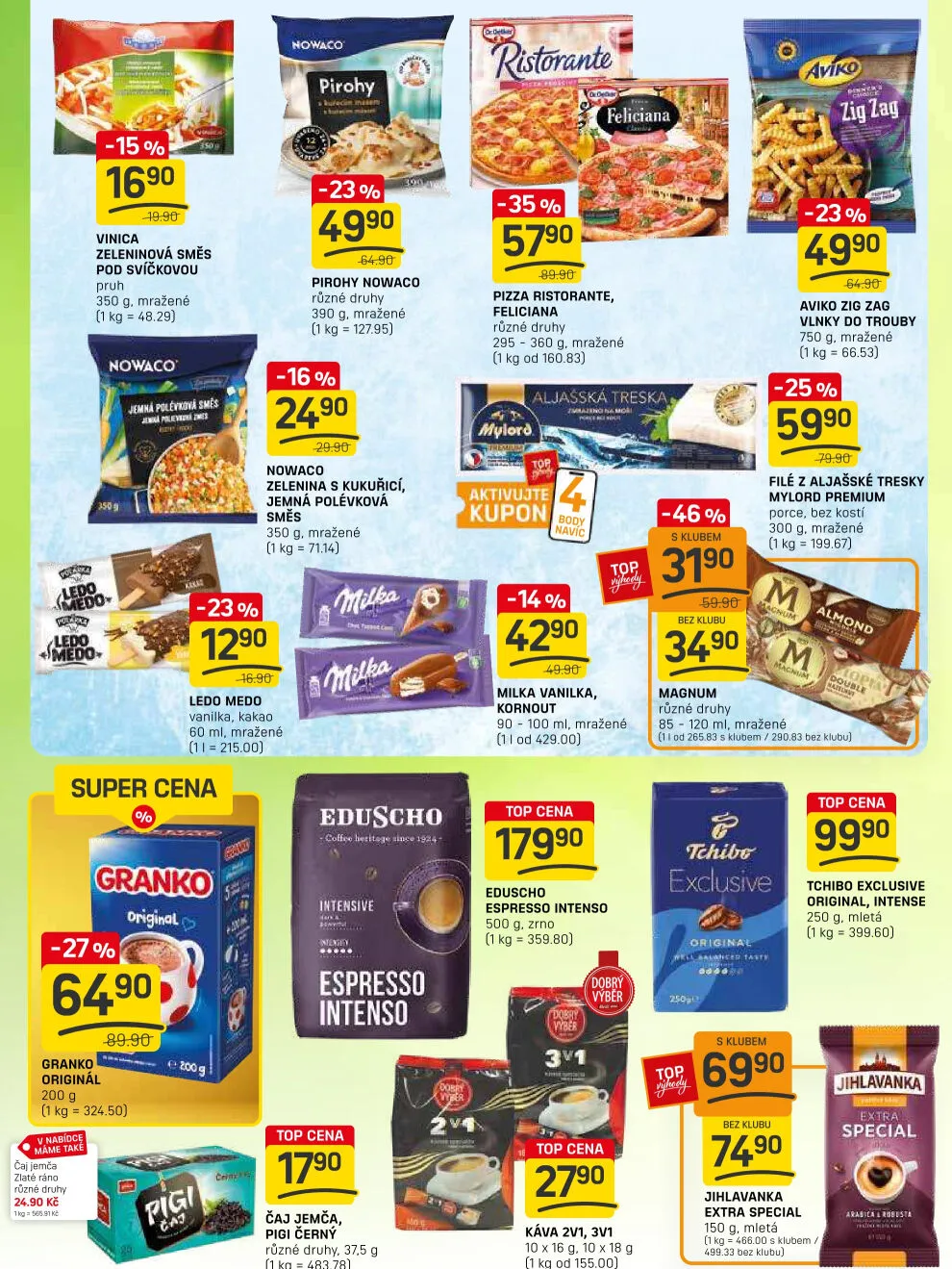 - **Pirohy Nowaco** - různé druhy, 390 g, mražené, cena 499 Kč (1 kg = 127,95 Kč).