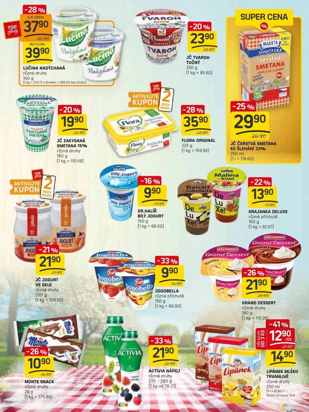 - **Zakysaná smetana** (180 g) je nyní za 1990 Kč, ideální pro vaše recepty.