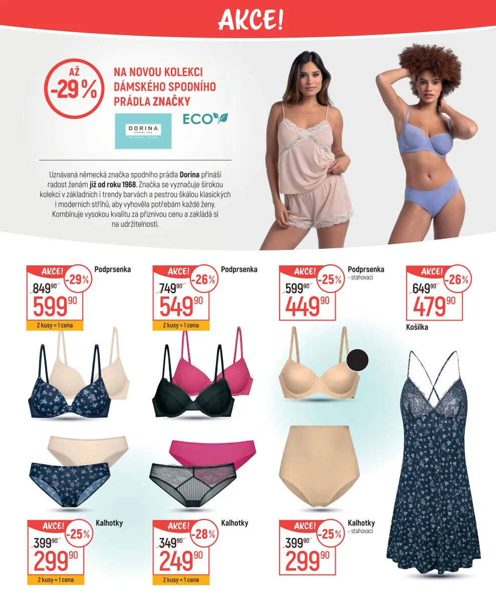 V letáku obchodu Globus najdete novou kolekci dámského spodního prádla značky Dorina. Tato uznávaná německá značka přináší radost ženám již od roku 1968 a nabízí širokou škálu klasických i moderních střihů v trendy barvách. Všechny produkty kombinují vysokou kvalitu s příznivou cenou a kladou důraz na udržitelnost.