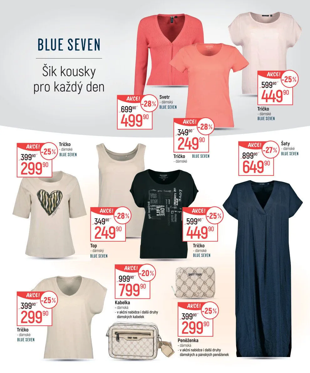 V letáku obchodu Globus najdete širokou nabídku dámského oblečení a doplňků. Mezi atraktivními kousky se objevují trička značky Blue Seven, která jsou nyní v akci se slevou až 28%. Dále si můžete vybrat z elegantních šatů a stylových topů, které jsou ideální pro každodenní nošení.