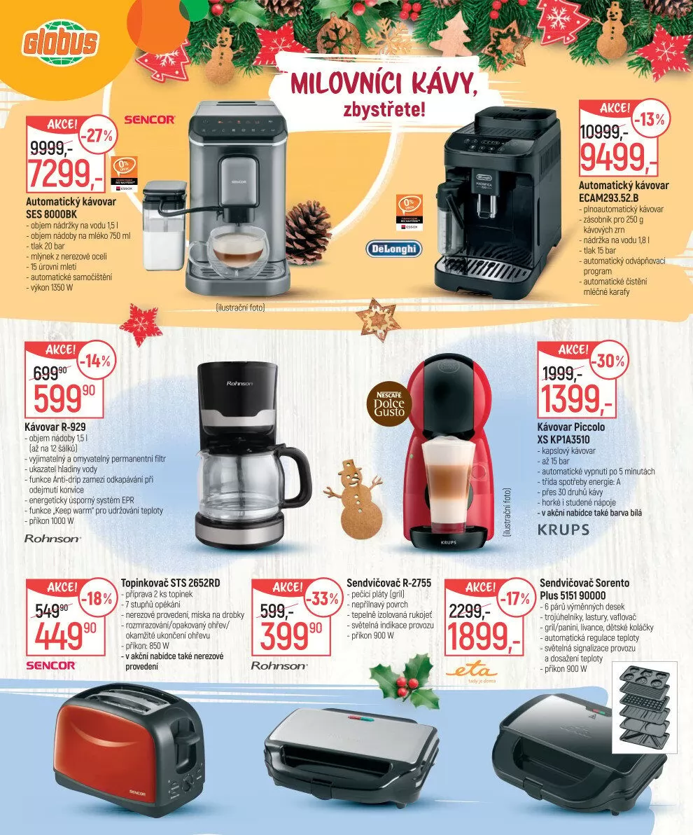 V letáku obchodu Globus najdete širokou nabídku kávovarů a dalších spotřebičů.