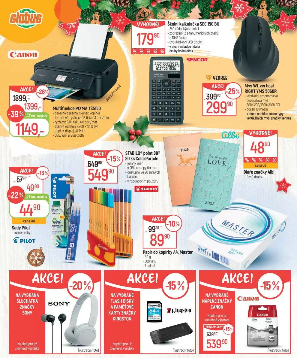 Mezi nimi je školní kalkulačka SEC 150 BU, nyní za 1149 Kč. Dále nabízíme multifunkční tiskárnu Canon PIXMA TS5150, která tiskne, skenuje a kopíruje, za akční cenu 5490 Kč.