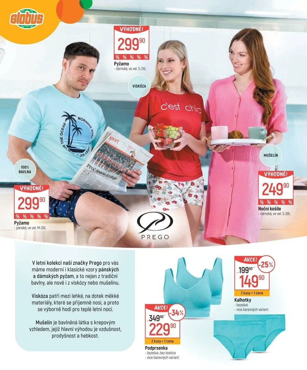 V letáku obchodu Globus najdete skvělou nabídku pánských a dámských pyžam, které jsou součástí letní kolekce značky Prego.