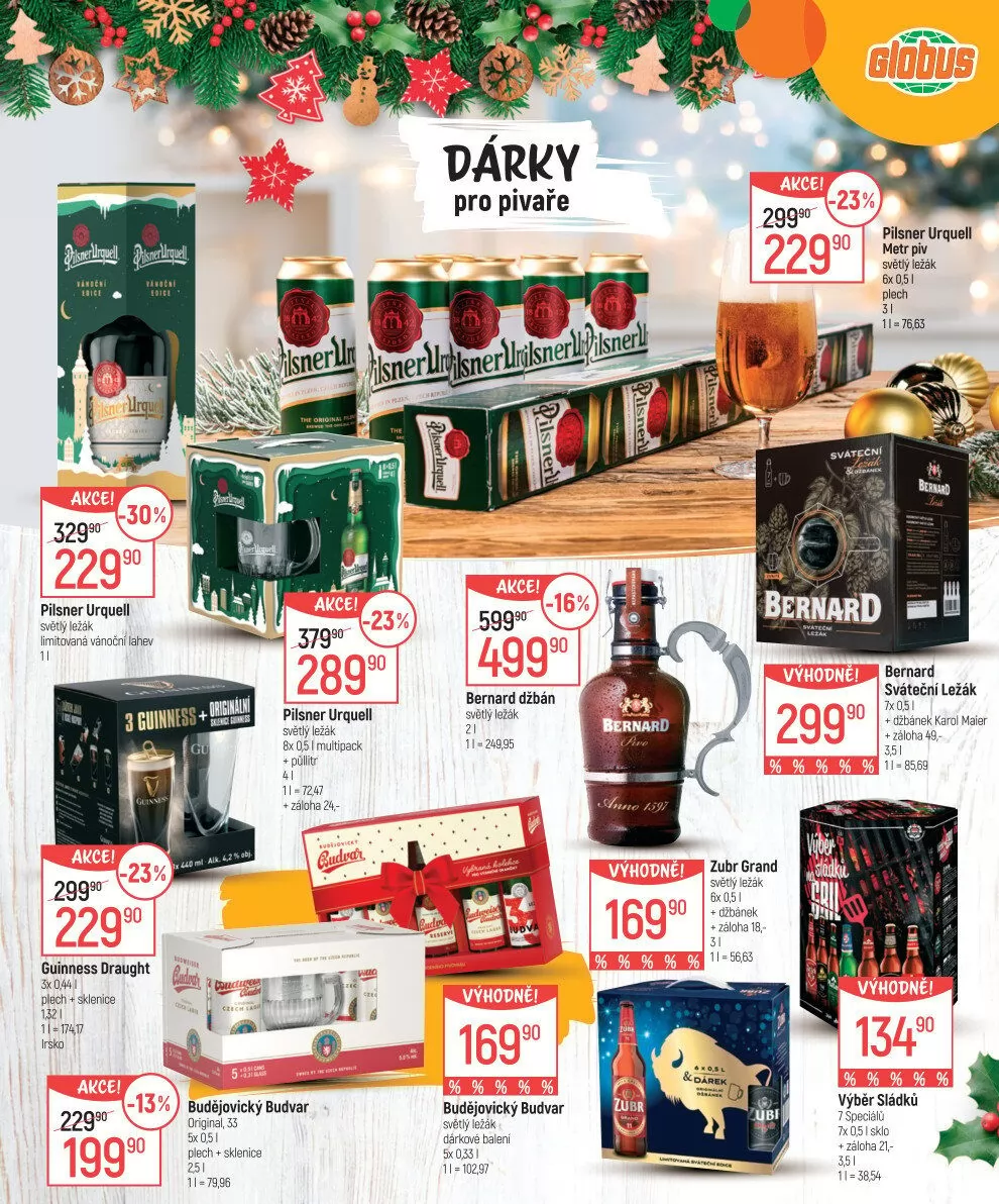 V letáku obchodu Globus najdete širokou nabídku piv a dárků pro pivaře.