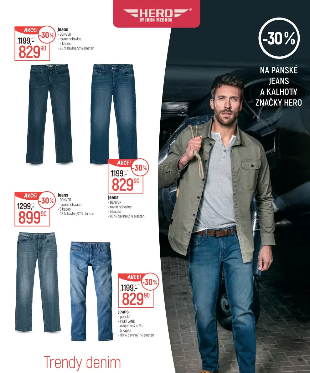 Jeans - DENVER - rovné nohavice - 98 % bavlna/2 % elastan - 899,90 Kč - 30 % sleva