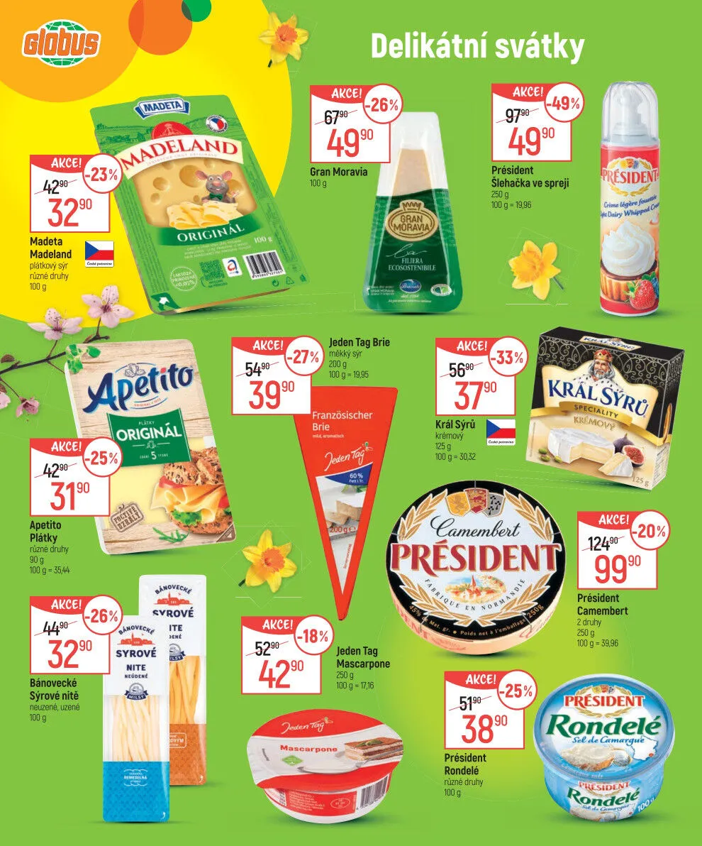 V letáku obchodu Globus najdete skvělé akce na široký výběr sýrů a dalších mléčných produktů.