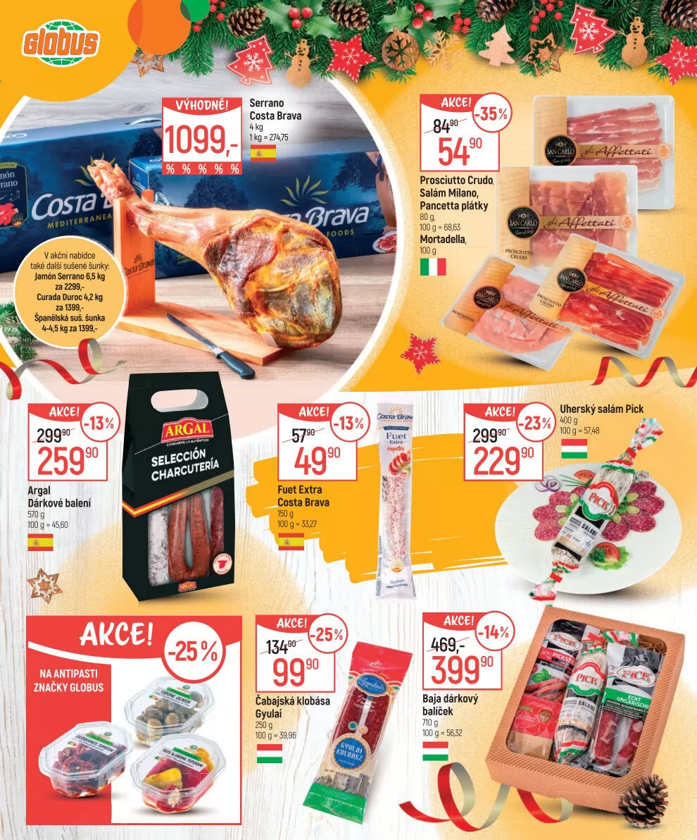 V letáku obchodu Globus najdete skvělou akční nabídku na sušené šunky a další lahůdky.