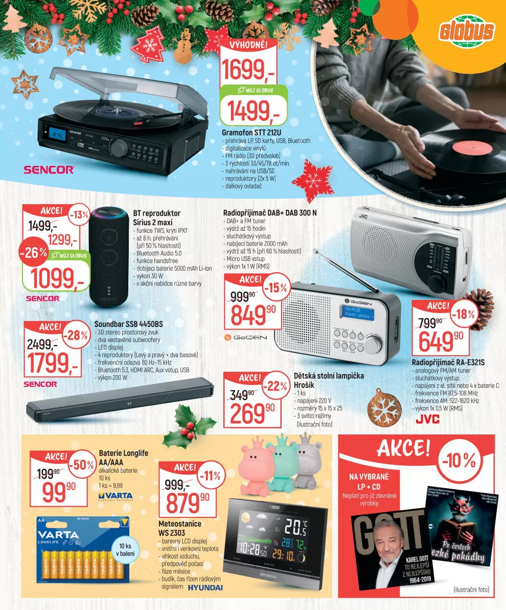 V letáku obchodu Globus najdete skvělé akční nabídky na produkty značky Sencor. Například gramofon STT 212U je nyní za cenu 1099 Kč, přičemž jeho běžná cena byla 1299 Kč. Tento gramofon přehrává vinylové desky, CD, SD karty a má Bluetooth funkci pro digitalizaci vinylů.