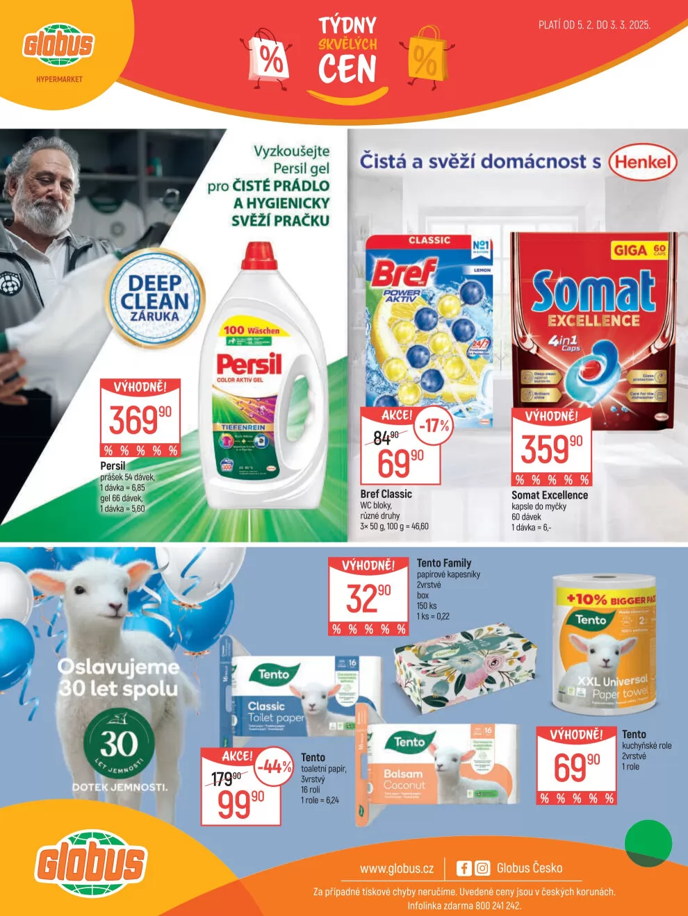 Nezapomeňte na toaletní papír s 16 rolí a Somat excellence kapsle do myčky s 60 dávkami.