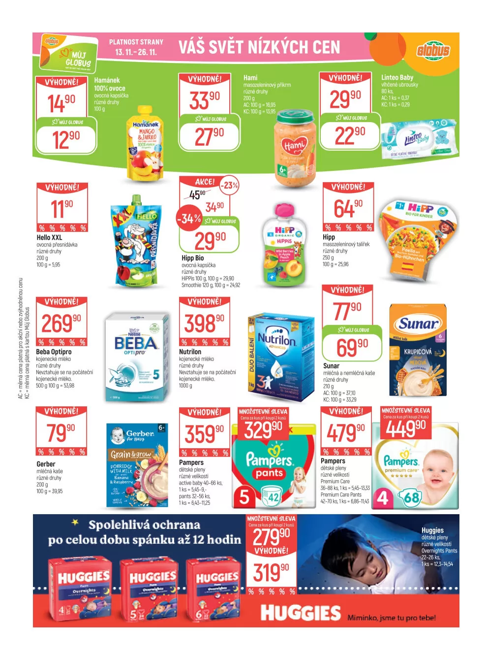V letáku obchodu Globus platném od 13.11. do 26.11. najdete širokou nabídku výhodných produktů pro děti a kojence.