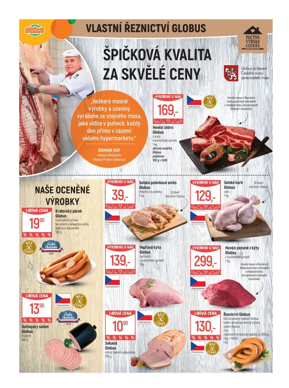 V letáku obchodu Globus najdete širokou nabídku kvalitních masných výrobků z vlastního řeznictví. Naše produkty jsou vyrobeny z masa mladých býků, které denně zpracováváme přímo v zázemí hypermarketu. Mezi oblíbené položky patří hovězí žebro, játrová zavináč, sekaná a selské polévkové směsi. Všechny výrobky jsou poctivé a vyrobené s láskou k řemeslu.