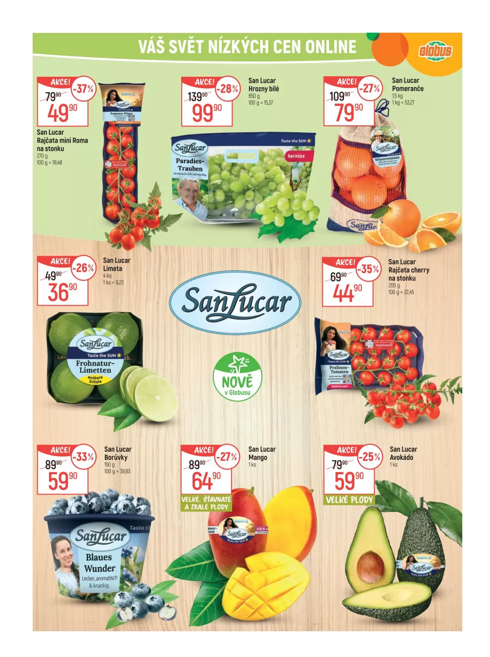 V letáku obchodu Globus najdete skvělé akce na čerstvé produkty značky San Lucar.