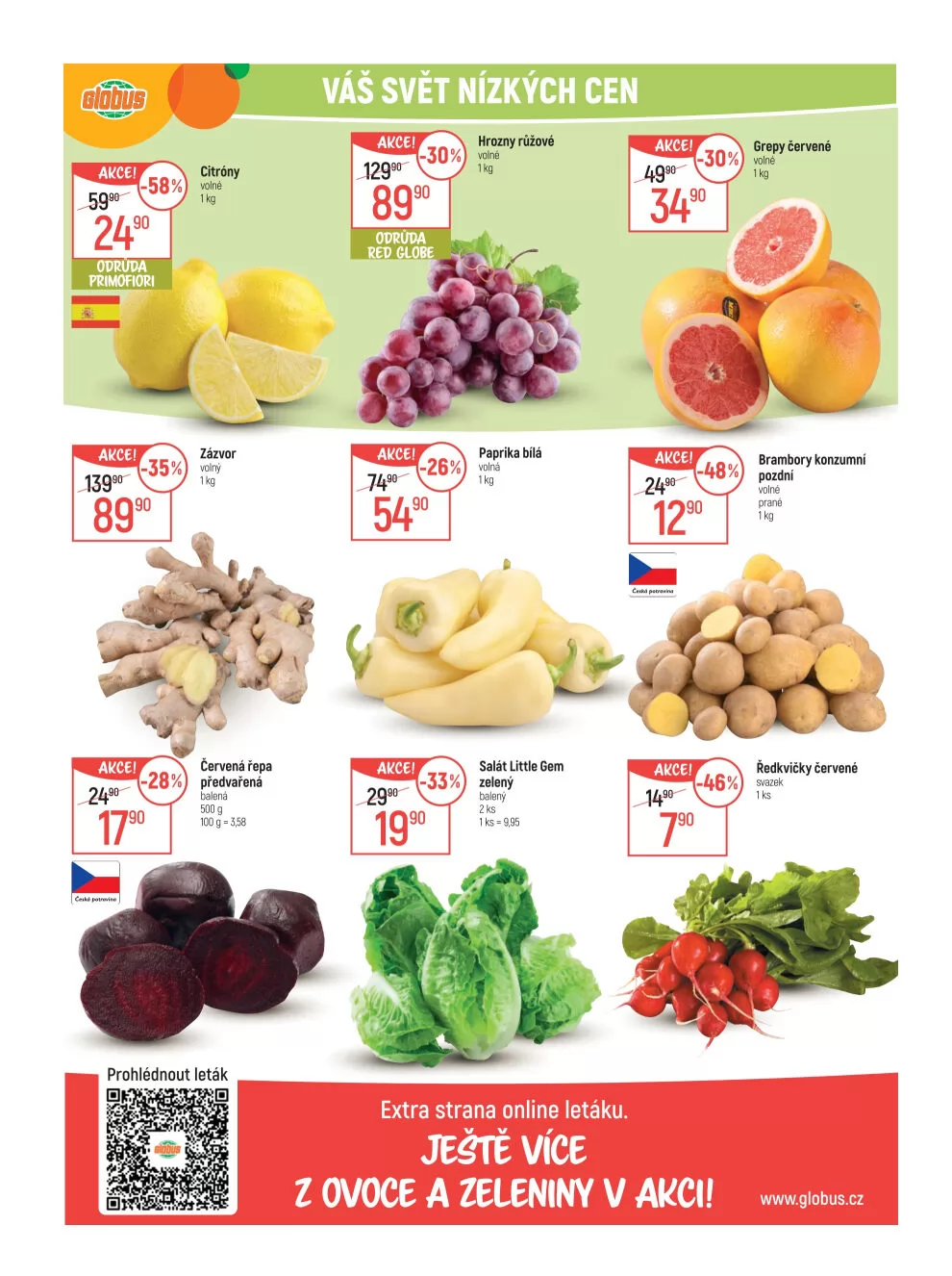 V letáku obchodu Globus najdete širokou nabídku čerstvého ovoce a zeleniny za skvělé ceny!