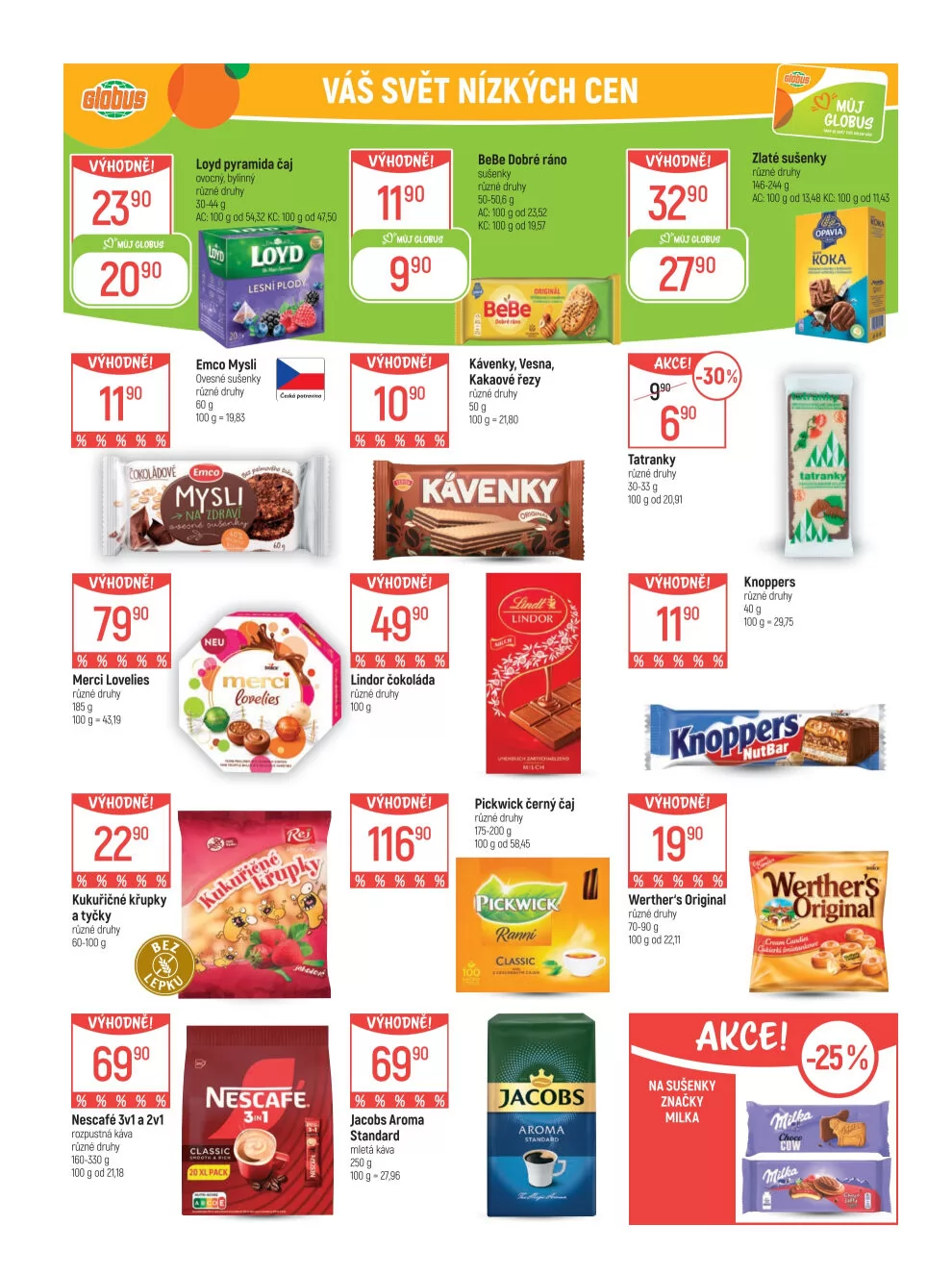 Nezapomeňte také na rozpustnou kávu Nescafé 3v1 a 2v1, čaj Loyd v pyramidových sáčcích a mletou kávu Jacobs Aroma.